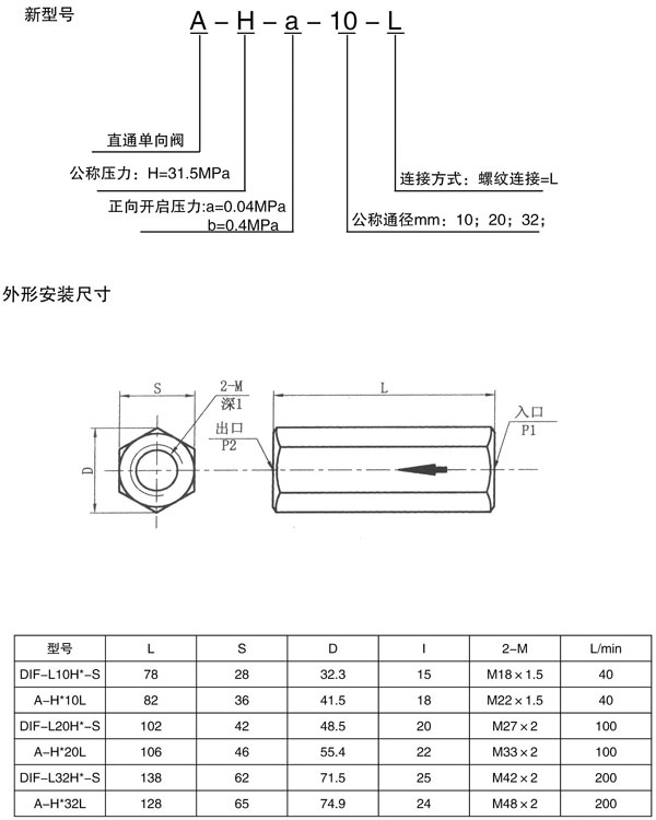 DIF-L10.20.32H直通單向閥